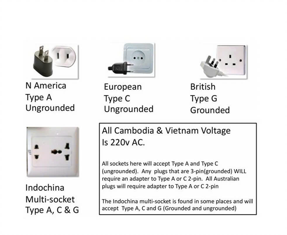 Adapter: Vietnam uses 220V with two-round-pin sockets.