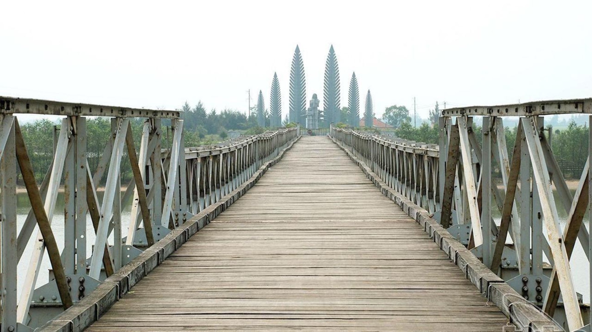 It was heavily bombarded during Vietnam War due to its critical position and has the dubious distinction of being victim to one of the first coordinated attacks in May 1972, using laser-guided “smart bombs. Some parts of the original structure remain intact, while large sections have clearly been built later to repair the holes. In this way the bridge is a strong visual expression of history over the Red River.