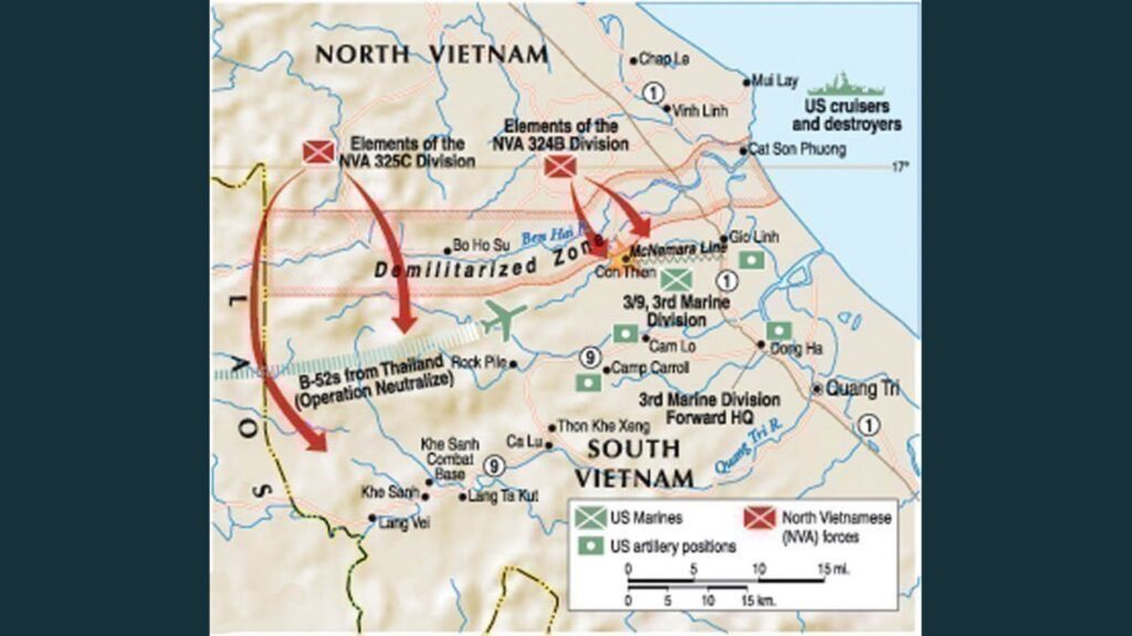 Today we’ll explore the area along Highway 9 and sections of the Ho Chi Minh Trail (QL14), as it is today. Starting at Khe Sanh Combat Base, this was the site of the 1968 Battle of Khe Sanh, which saw the US respond to an NVA siege by dropping over 100,000 tons of bombs onto the surrounding area.