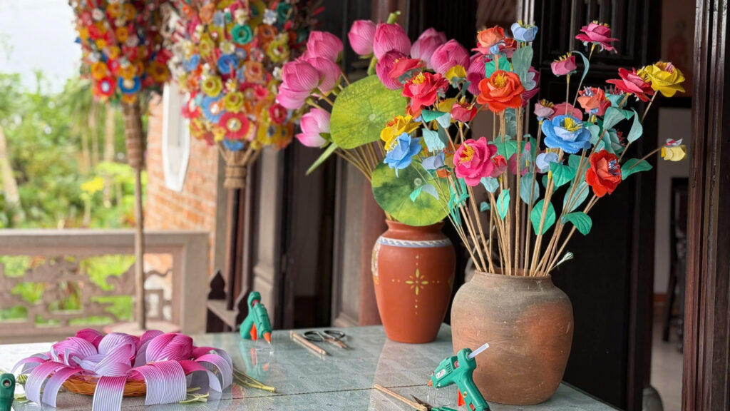 In the afternoon, explore Hue’s iconic craft villages. At Sinh Village, discover the ancient art of folk woodblock painting, while Thanh Tien Village invites you to create colorful paper flowers alongside local artisans. These immersive encounters allow you to craft your own keepsake while supporting the preservation of Hue’s cultural heritage.