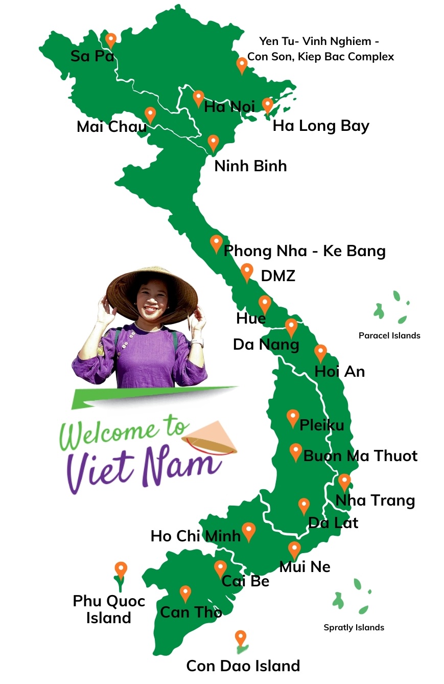 - The popular destinations include Ha Long Bay, Hue, Hoi An, Ho Chi Minh City and Phu Quoc island in southern Kien Giang province .